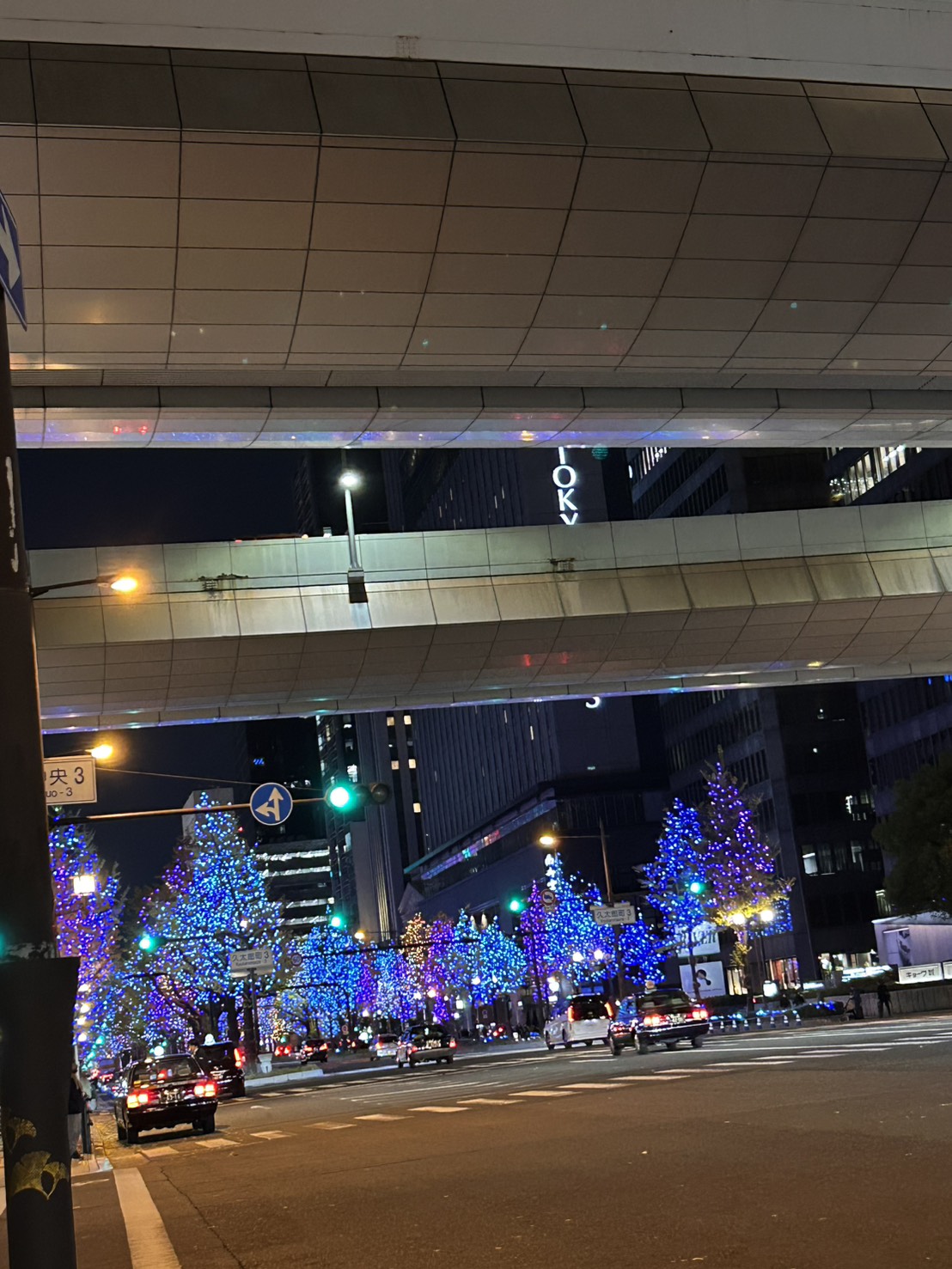 ホテルへ向かう途中、街のイルミネーションが視界に広がりました。